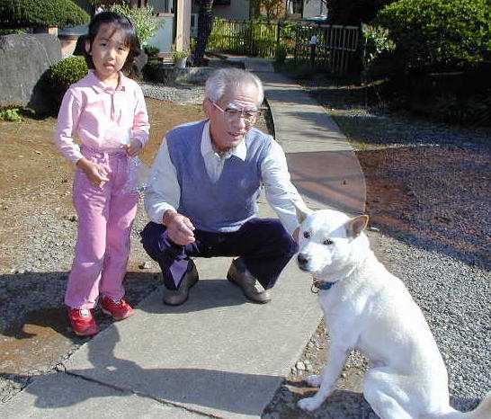 Azusa and her grandfather, with dog named Jon