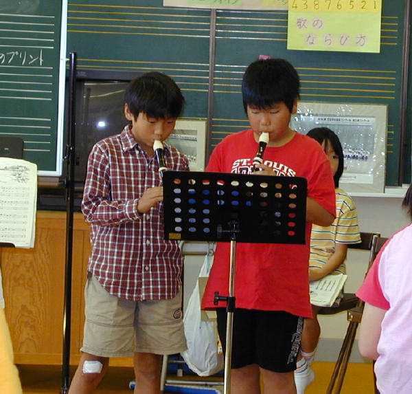 We started out by observing a music class where one fourth grade class was practicing on the recorders. The teacher then had them come up to the piano to sing 10 Little Indians (in English). Its amazing how much quieter the group is when all are barefoot on carpet!
