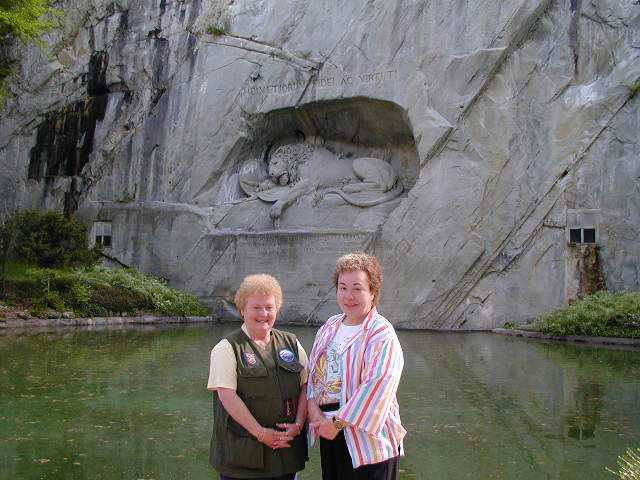 In Lucerne, Switzerland, Lois and I pose in front of the famous Lion Memorial