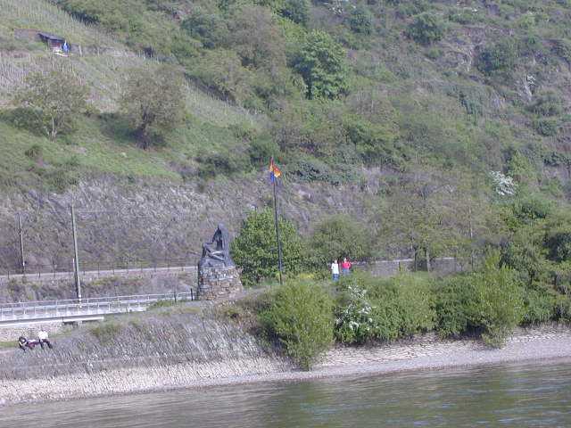 A famous statue is on an island of the Rhine to commemorate the Legend of Lorilei who supposedly stood (naked) on the hill and many river captains crashed on the rocks below.