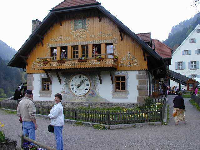 After traveling through the Black Forest we arrived at a cute lunch stop in a cookoo clock factory. They even made the side of the building into one big clock with dancing figures.