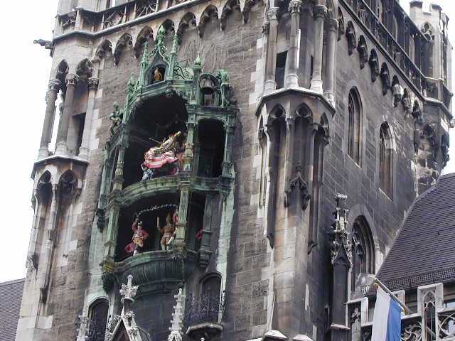 We finally arrived in Munich in time to watch the 5:00 performance of the Glockenschpiel on the famous Marienplatz. It only "performs" once or twice a day with characters going around on three levels and a synthetic joust. Quite impressive. Since Munich was also the birthplace of the Nazi party in the 30s, we also saw many places famous for their more recent history.
