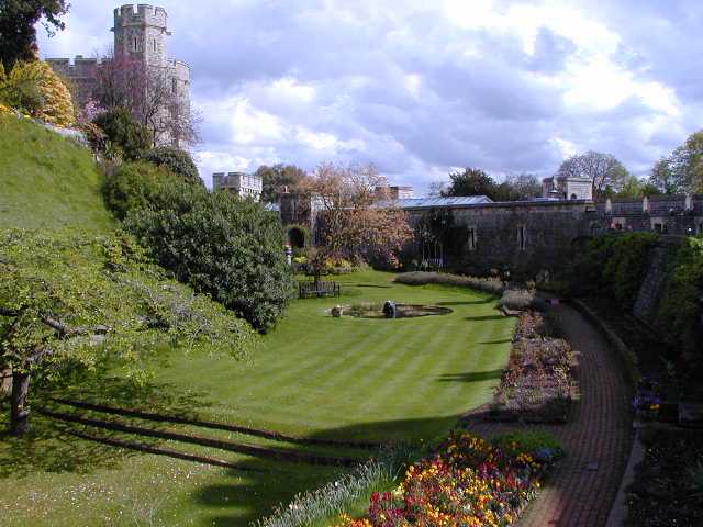 It was built in "mot & bailey" style, which means it is on a hill (mot) with a moat around it. William tried to keep water in the moat for 40 years but finally gave up. The rocks are too porous; since then its become a lovely garden area.